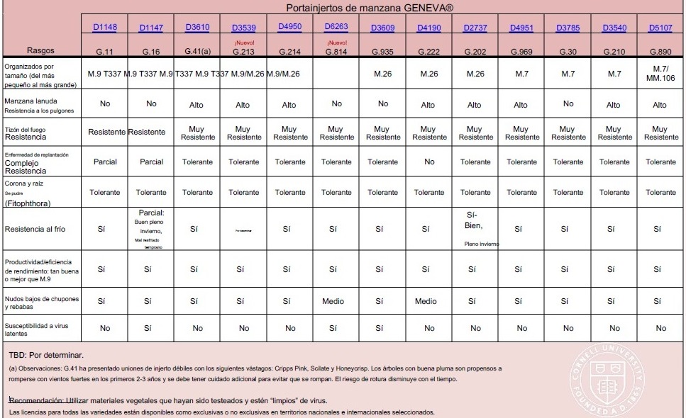 Los investigadores de la Universidad de Cornell, en Estados Unidos, y el USDA comenzaron a desarrollar la serie Geneva en 1968. Esta serie se adapta a las condiciones del este de Norteamérica y es conocida por su gran resistencia al fuego bacteriano, al pulgón lanígero de la manzana y a la podredumbre de la raíz, entre otras. La serie Geneva se utiliza ampliamente en el Atlántico Medio de los EEUU. Algunos de los portainjertos Geneva son: G.65, G.11, G.16, G.41, G.214, G.935, G.202, G.969, G.30 y G. 210.